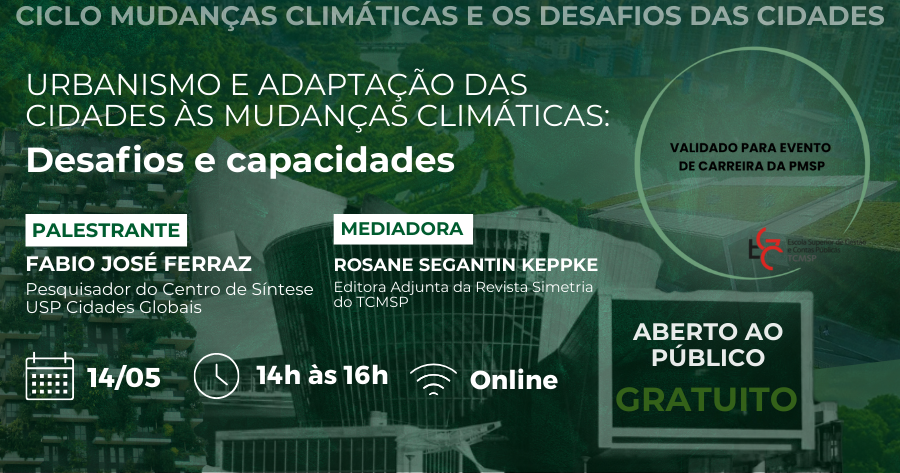 Este webinar discute adaptação das cidades às mudanças climáticas conciliada com desenvolvimento urbano, econômico e social. Tem como base a inteligência territorial coletiva, a Engenharia e a gestão do conhecimento em busca de inovações e tecnologias que propiciem efetividade na resolução dos problemas urbanos.