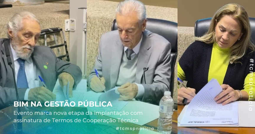 Na manhã desta terça-feira (23), o Tribunal de Contas do Município de São Paulo (TCMSP) sediou o evento “Tecnologia BIM aplicada à gestão pública da cidade de São Paulo”, que teve como destaque a assinatura dos novos Termos de Cooperação Técnica entre o TCMSP, o Conselho Regional de Engenharia e Agronomia de São Paulo (CREA-SP) e o Instituto de Engenharia (IE), marcando um avanço estratégico na modernização da gestão urbana da capital paulista.